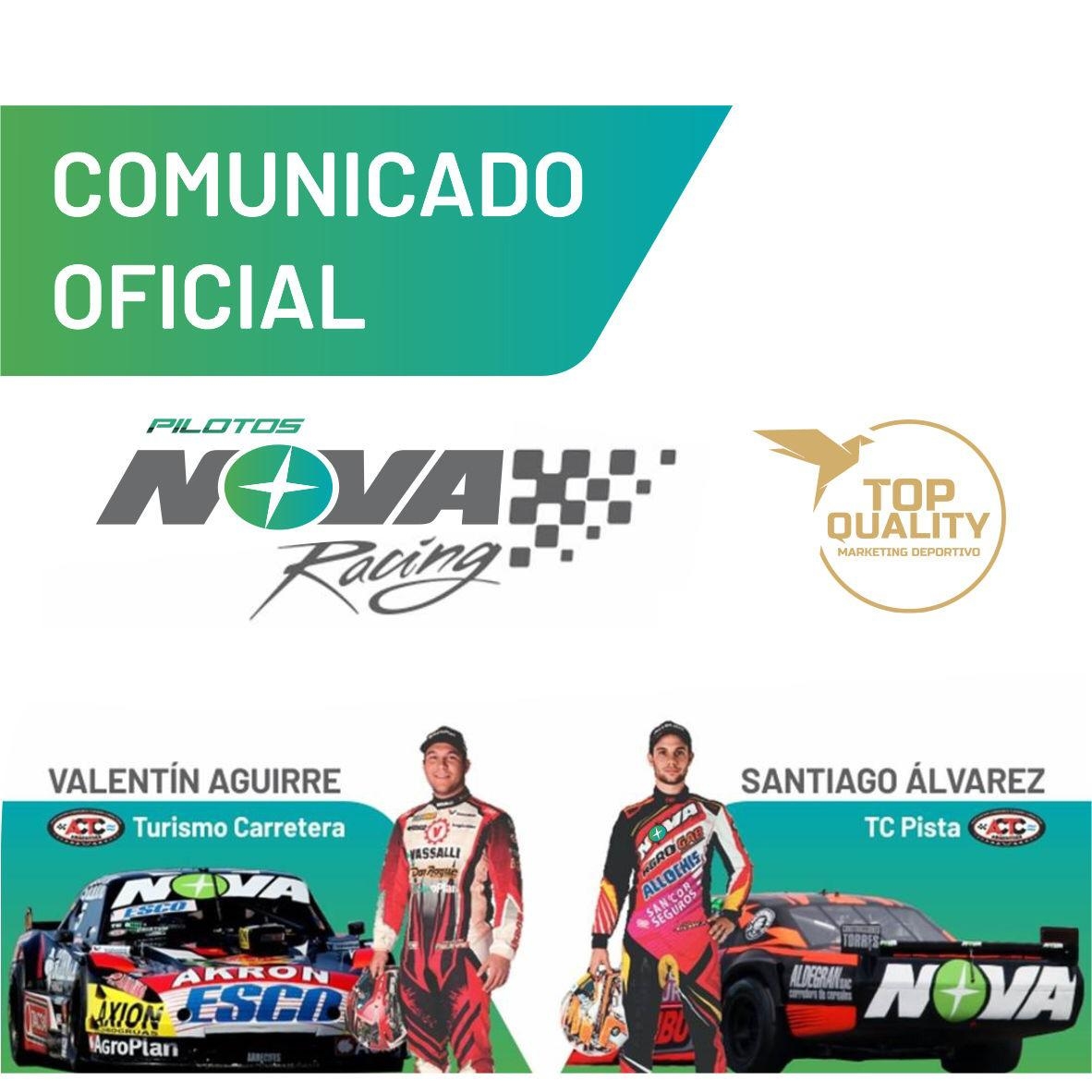Serán dos los pilotos que representen al Nova Racing. Uno de ellos será Valentín Aguirre en el Turismo Carretera. El arrecifeño demostró a lo largo de su corta trayectoria que es un piloto con un enorme talento y que tiene todas las cualidades para ser un referente del automovilismo. El otro representante de esta importante alianza será Santiago Álvarez, otra gran apuesta del futuro, en el TC Pista.