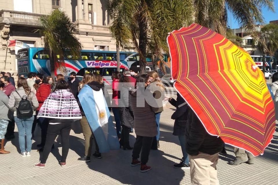 Agentes de viajes, llegaron en colectivos de larga distancia para evidenciar la cantidad de sectores relacionados con el turismo que también se ven afectados por el parate total.