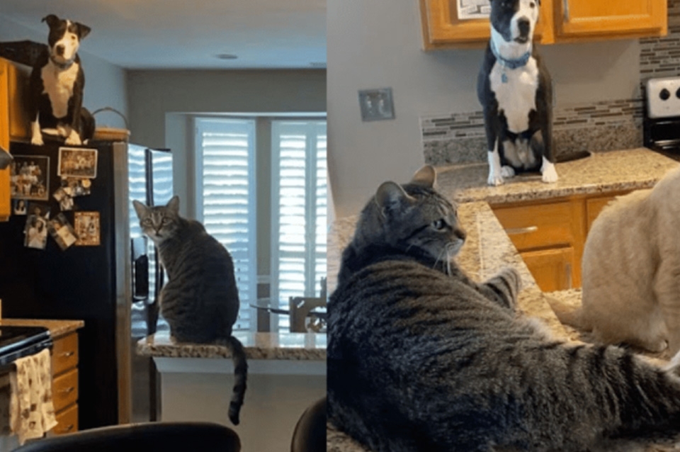 Este perro se crió con dos gatos -Pecan y Gizmo- que vivían en la casa a la cual llegó tras ser adoptado por Bethany Castiller y su familia en la ciudad de Mount Pleasant, Michigan, en Estados Unidos.