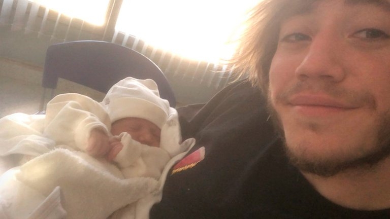 También posteó dos postales en las historias de Instagram para dar a conocer a la recién nacida. En la primera imagen se lo ve a él y a la pequeña entre sus brazos, allí escribió "Durmiendo". Mientras que en la segunda se puede apreciar también a Rocío junto al artista y la niña. "Gracias a Dios", acotó el artista que resalta por su gran sonrisa ante este gran momento en su vida.