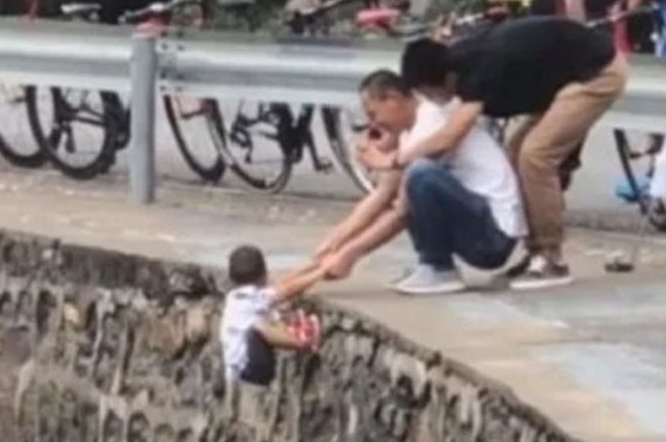Afortunadamente ni el niño ni los hombres resultaron heridos tras la secuencia que fue registrada y cuestionada por miles de usuarios.