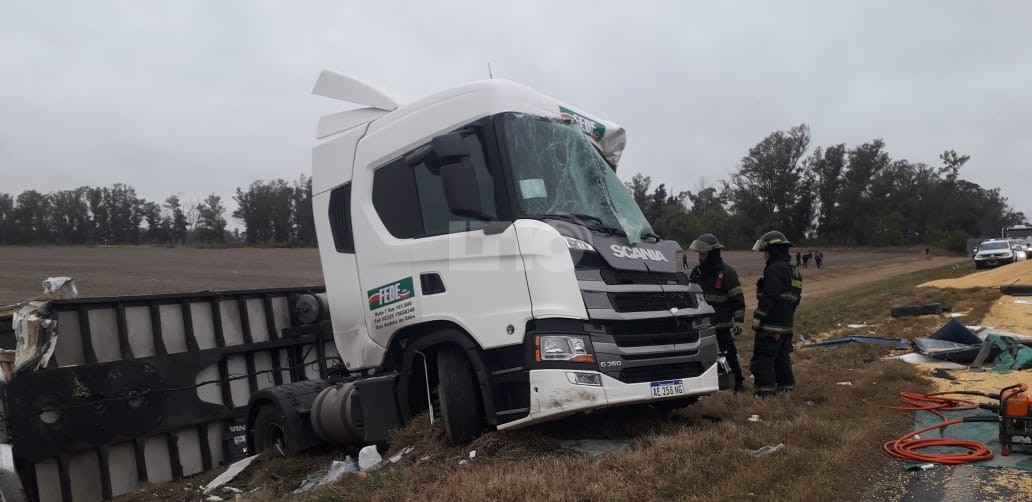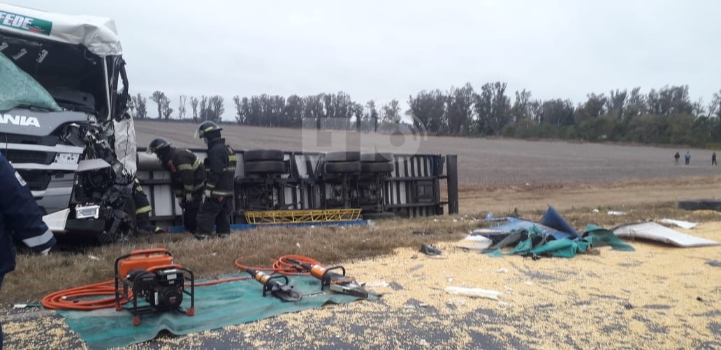 En el lugar, dos camiones con acoplado colisionaron, dejando como saldo la muerte de uno de los choferes. La víctima fue identificada como Raúl Hernán Valcarcel, de 55 años y oriundo de San Andrés de Giles, provincia de Buenos Aires.