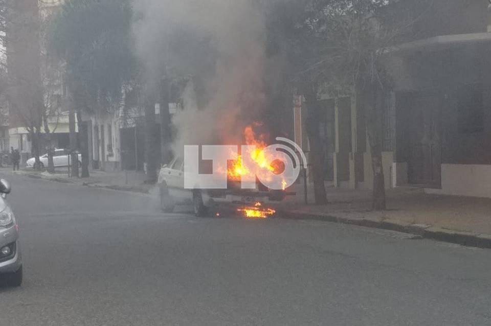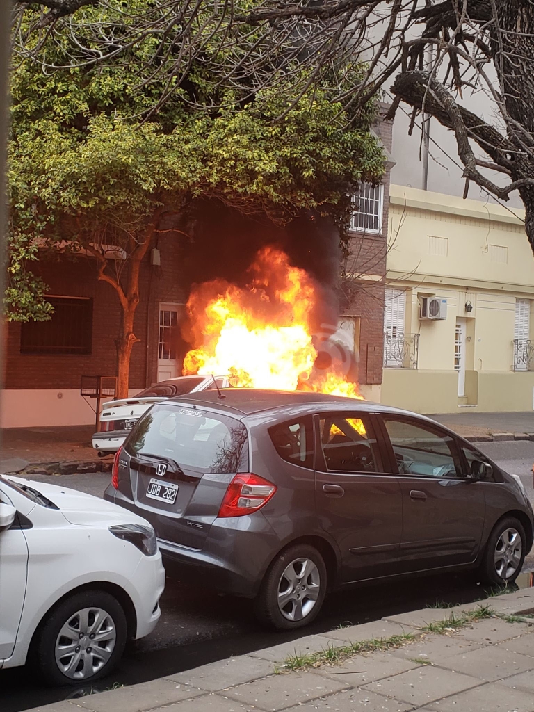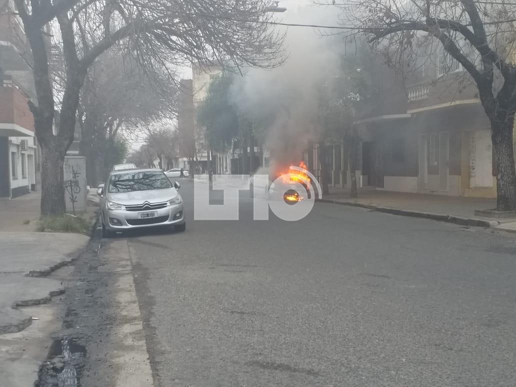 En la tarde de este miércoles llegaron imágenes de un vehículo que se prendió fuego en Francia y Catamarca, pleno centro santafesino.