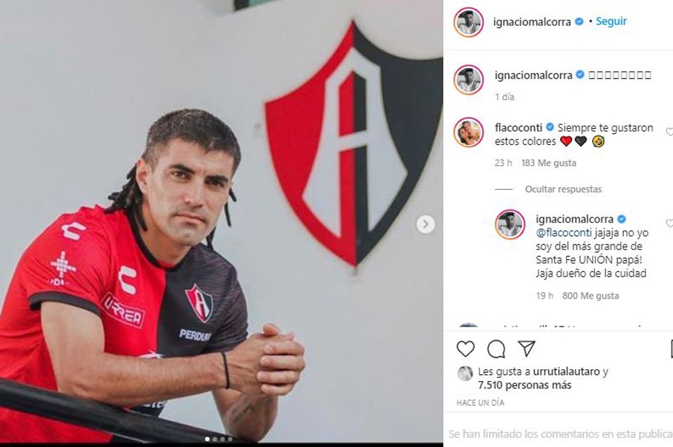 El ex tatengue subió a su Instagram una foto con la camiseta de Atlas, que tiene los colores rojo y negro, a lo que rápidamente Germán Conti le respondió: " Siempre te gustaron estos colores".