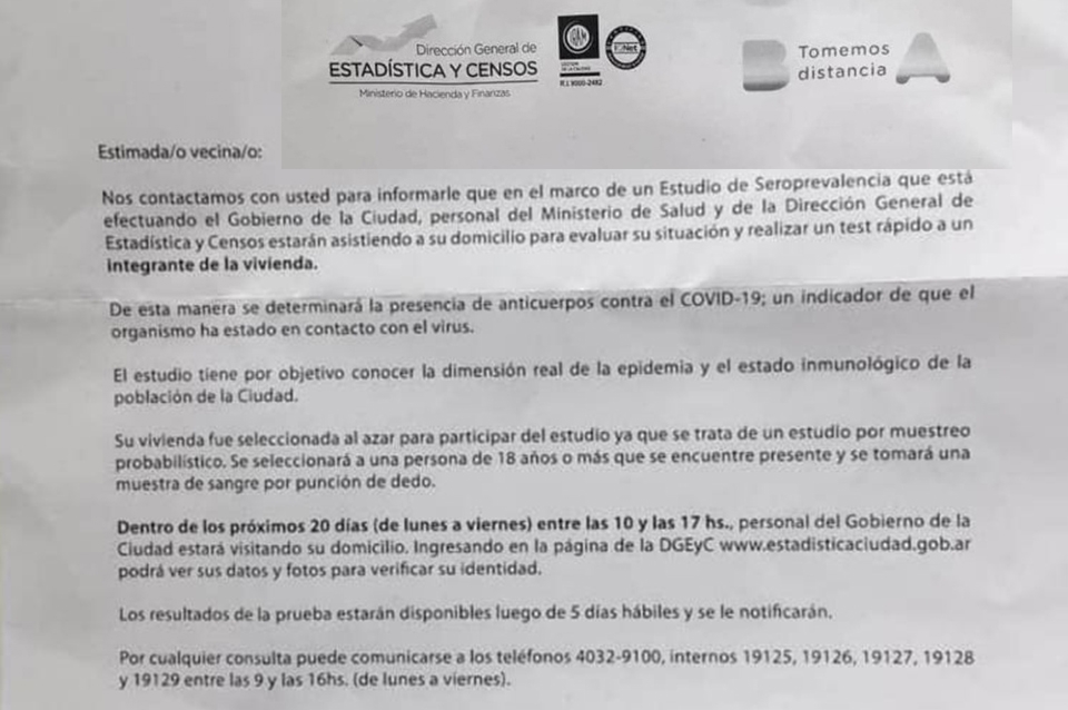 El Instituto Provincial de Estadística y Censos (IPEC) emitó un comunicado en el que informa que no realizan ningún operativo para evaluar la situación sobre COVID 19, luego de que una carta se viralizara en las redes sociales. La carta en cuestión pertenece a la Dirección General de Estadística y Censos de la Ciudad de Buenos Aires, y no tiene injerencia en territorio santafesino.