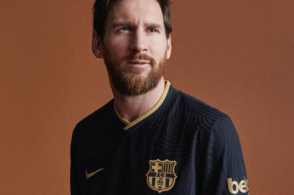 Barcelona presentó hoy la segunda equipación para la temporada 2020/21, con dominio absoluto del negro como y con detalles dorados, como el escudo y los patrocinadores.