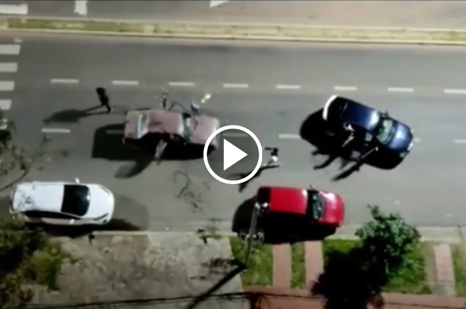 En las imágenes que fueron registradas por un vecino desde lo alto de un edificio, puede verse dos automóviles parados en el medio de la calle en inmediaciones de Avenida Almirante Brown y Estanislao Zeballos, a pocos metros de la famoso Rotonda. En medio de un intenso griterío, varias personas arrojan objetos, golpean un vehículo y hasta destruyen por completo una puerta.