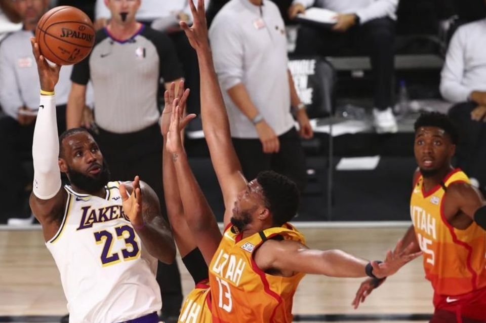 Los Angeles Lakers (51-15), líder de la Conferencia Oeste y candidato al título, le ganó a Utah Jazz (42-25), por 116 a 108 con 64 puntos logrados por la dupla Anthony Davis y LeBron James, en uno de los partidos jugados anoche por la NBA en la "burbuja" de Wide Wolrd of Sports de Disney, en Orlando.