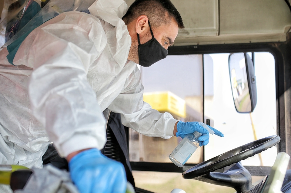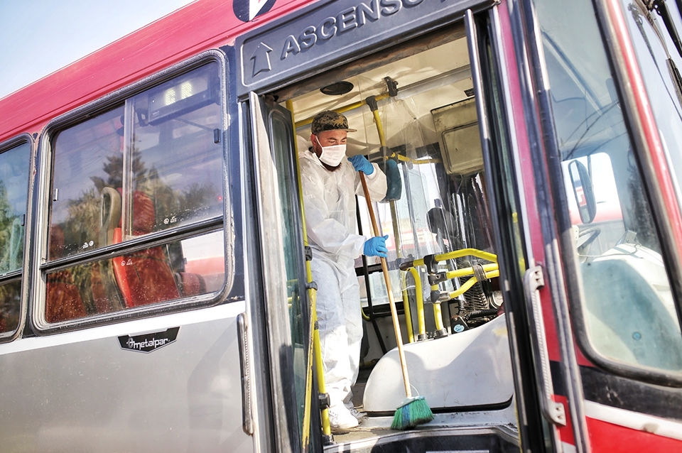 Cada uno de los colectivos se desinfecta y se lava antes de comenzar el recorrido. En tanto, en cada una de las vueltas que realizan los coches, se desinfecta nuevamente antes de comenzar el siguiente recorrido. El piso y todas las superficies que pueda tocar un pasajero son desinfectados con lavandina.