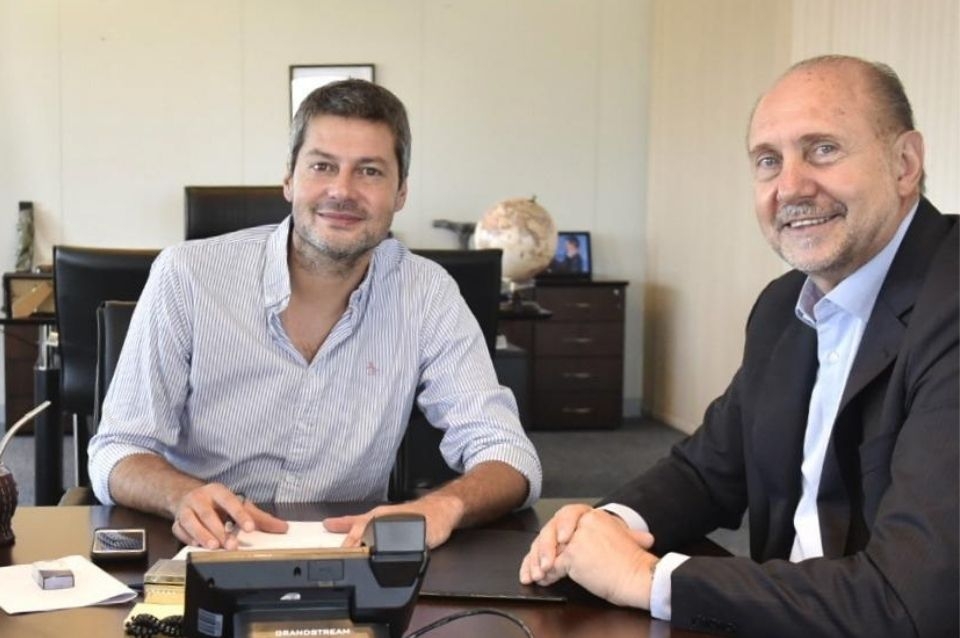 El ministro de Turismo y Deportes, Matías Lammens, y el gobernador de Santa Fe, Omar Perotti, presentaron este miércoles el programa "Clubes en Obra" destinado a mejorar la infraestructura de instituciones y clubes deportivos por más de 33 millones de pesos.
