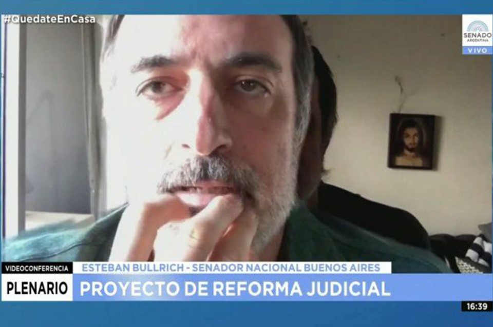Esteban Bullrich, senador de Cambiemos por la Provincia de Buenos Aires, utilizó una imagen suya para simular estar presente mientras sus pares debatían modificaciones al Proyecto de ley de Reforma Judicial, en el marco del plenario de Comisiones de Asuntos Constitucionales y Justicia y Asuntos Penales.