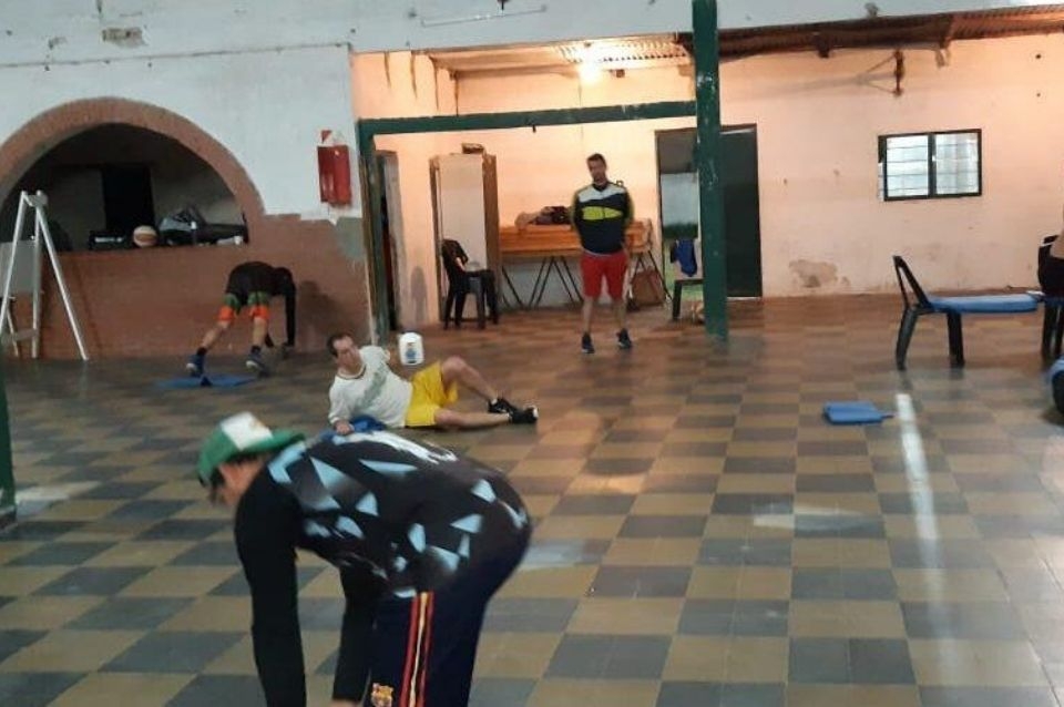 Tanto en la cancha al aire libre como en el SUM los jugadores, a las órdenes de Leandro Constantini y Carlos Mendieta realizan distintos ejercicios respetando el distanciamiento y los puntos que estipula el protocolo.
