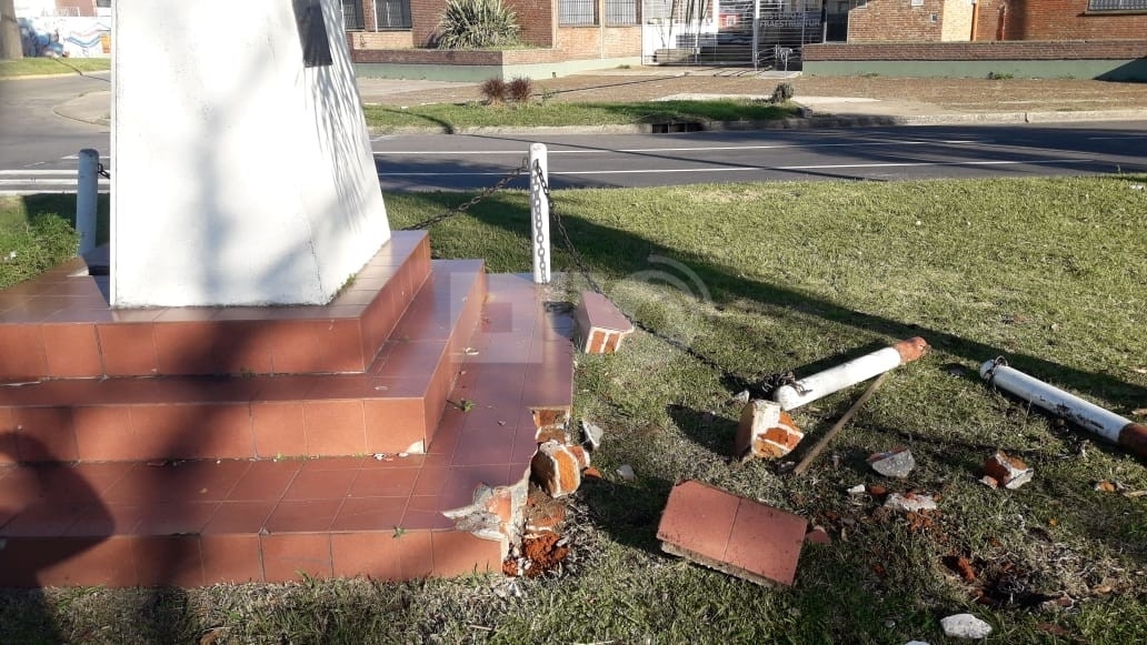 Foto: los daños en el monumento luego del accidente.