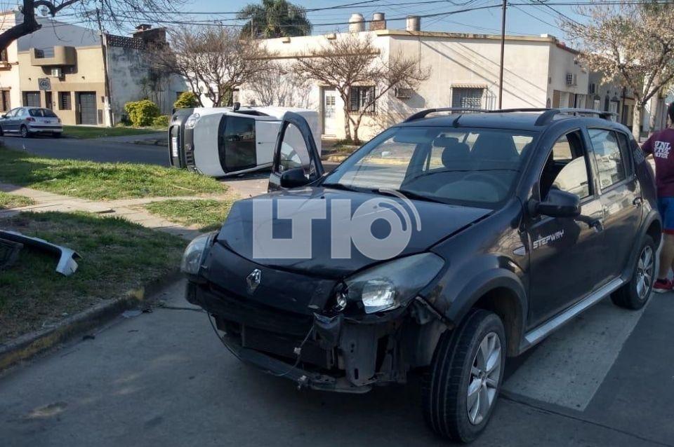 Fuerte choque: uno de los vehículos quedó tumbado sobre el asfalto