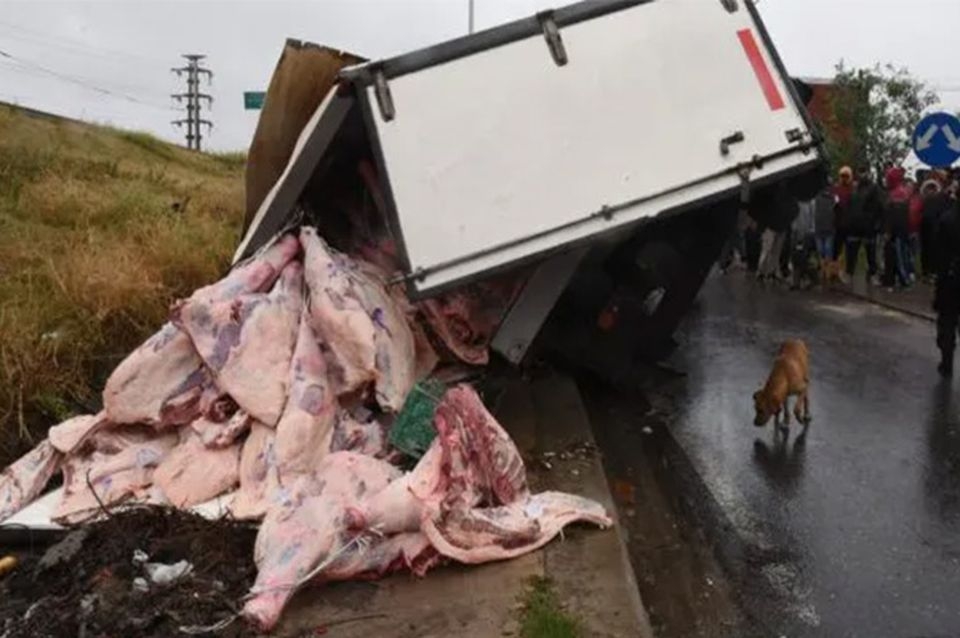 Volcó un camión con 7 mil kilos de carne y hubo incidentes con vecinos