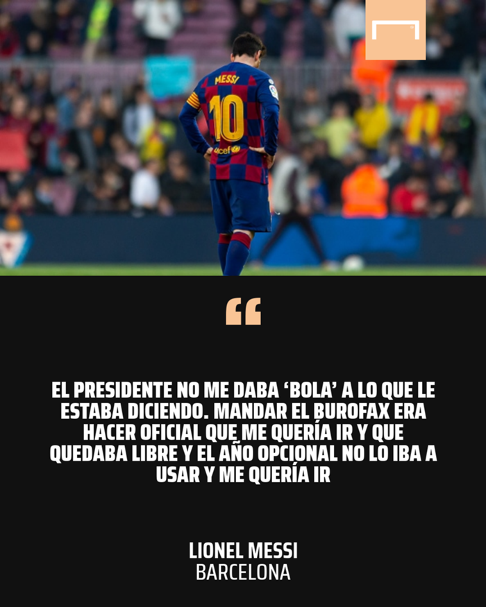 El famoso burofax. Se ha hablado muchísimo de que Messi está mal aconsejado y mal asesorado por la decisión de comunicar que querías irte por burofax ¿Por qué decides enviar ese burofax? ¿Qué querías demostrar? ¿Cuál era tu postura?