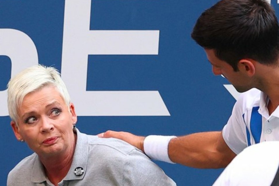 Djokovic no quiso golpear a la jueza, pero tuvo la mala fortuna de pegarle el pelotazo directamente en la cabeza lo que provocó que cayera al suelo.