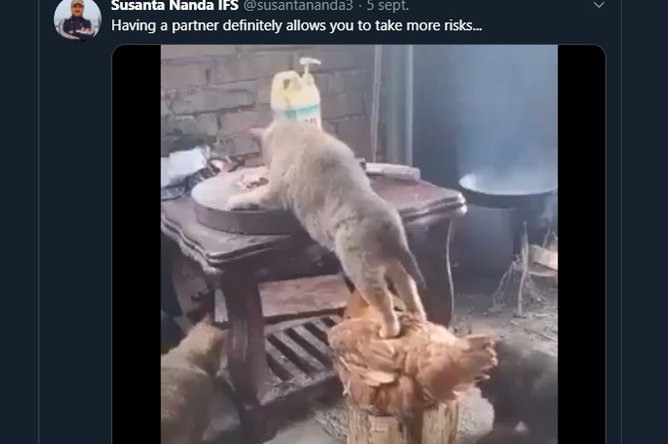 Una asociación ilícita, para cometer un crimen: el robo del alimento, perpetrado por estos dos improvisados compañeros de aventuras. El video se hizo viral gracias a Susanta Nanda, miembro del Servicio Forestal Indio, que lo publicó en su cuenta de Twitter, logrando 12.500 reproducciones en un día.”Tener un compañero definitivamente te permite tomas más riesgos”, escribió junto al clip.