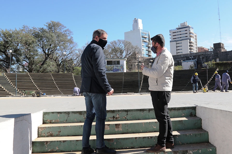 El intendente Emilio Jatón recorrió este martes los trabajos que se realizan en el tradicional escenario público y sus inmediaciones y que incluyen obras de accesibilidad, seguridad y condiciones óptimas para el desarrollo de espectáculos y actividades culturales.