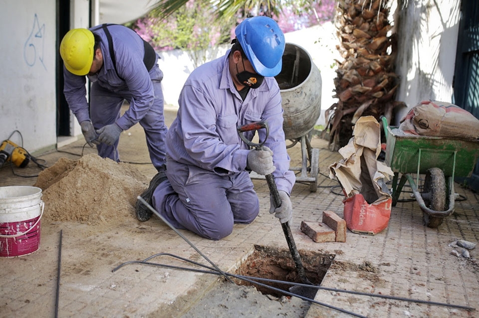 También se lleva a cabo una nueva instalación sanitaria cloacal y pluvial, y la construcción de dos baños accesibles equipados con dos inodoros cada uno, bachas de acero inoxidable con griferías temporizadas y dos mingitorios. En el entorno se prevé colocar un nuevo mobiliario urbano y se harán mejoras en el parquizado.
