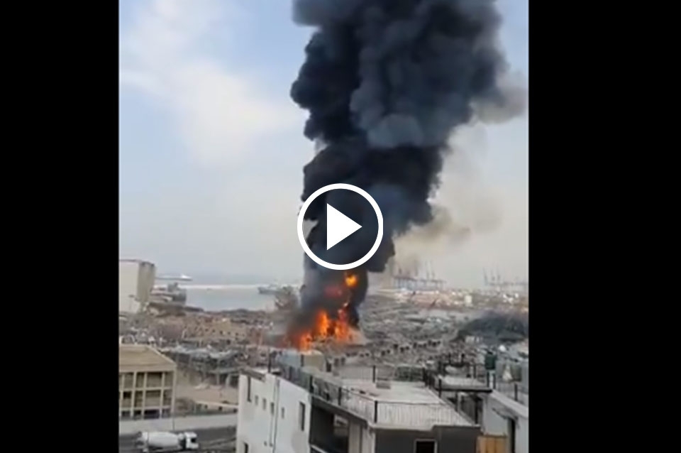 Gran incendio en el puerto de la capital del Líbano, #Beirut, a un mes después de que enormes explosiones devastaran instalaciones portuarias y vastas zonas a la redonda. Afirman que lo que ardía era un depósito de combustible y cubiertas ► https://t.co/q3KNro4Ipj pic.twitter.com/9JC9qoH1Ts