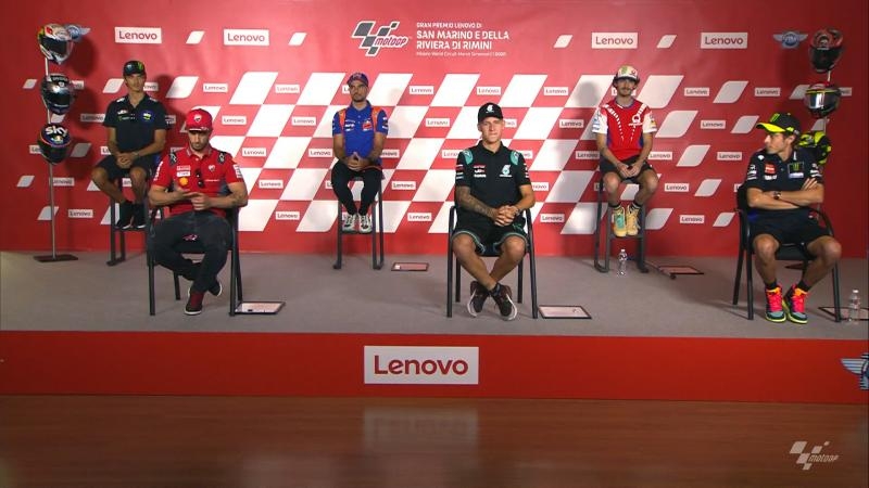 Para valorar el inicio de este apasionante 'rush' final del campeonato nadie mejor que algunos nombres propios de MotoGP™. En esta ocasión, los encargados de valorar la previa del Gran Premio Lenovo de San Marino y de la Riviera de Rimini fueron Fabio Quartararo (Petronas Yamaha SRT), Andrea Dovizioso (Ducati Team), Valentino Rossi (Monster Energy Yamaha MotoGP), Miguel Oliveira (Red Bull KTM Tech3), Francesco Bagnaia (Pramac Racing) y el líder de Moto2™, Luca Marini (SKY Racing Team VR46).