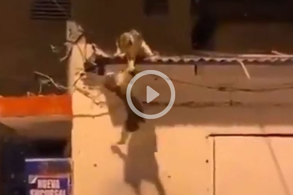 Ocurrió en República Dominicana y los usuarios viralizaron el video a través de las redes sociales. En las imágenes captadas por un teléfono celular se observan a los dos felinos en una especie de “lucha a muerte” parados sobre el techo de una casa. En un momento, uno de los gatos queda colgando del tejado, aferrándose con sus patas delanteras, mientras que el otro lo observa mejor posicionado y aprovecha la ventaja para arrojarlo.