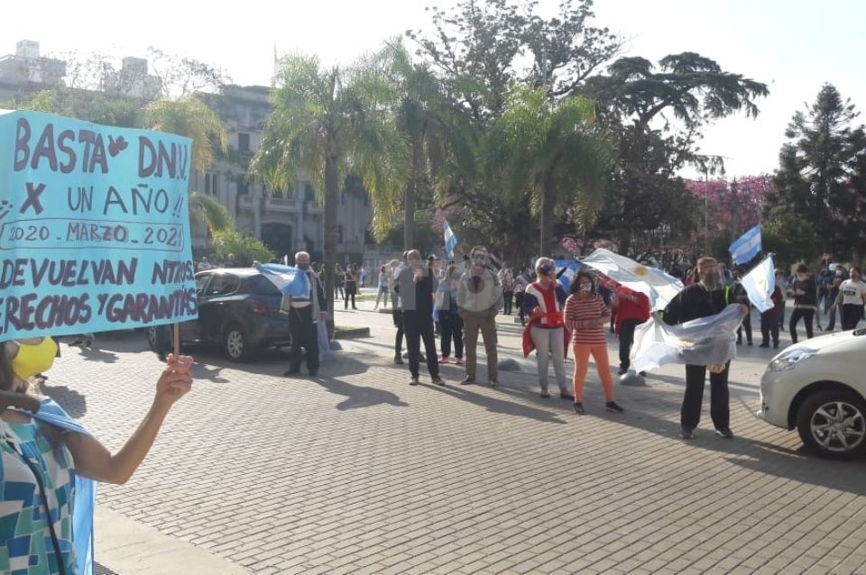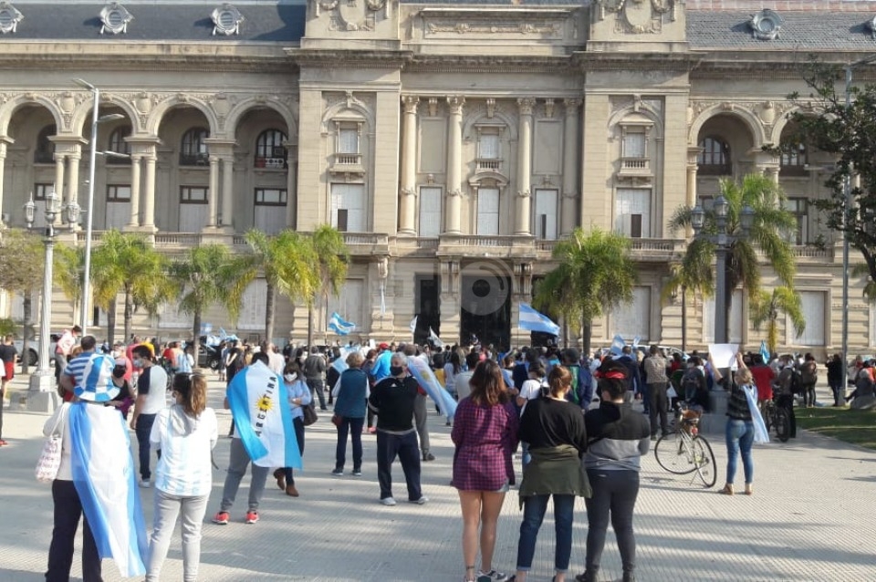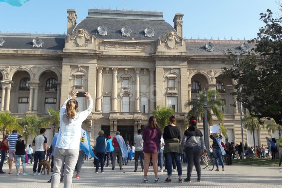 Un grupo de santafesinos, autoconvocados, se reunieron en la Plaza 25 de Mayo, frente a Casa de Gobierno para manifestarse en contra de las últimas medidas anunciadas por el gobierno provincial para las ciudades de Santa Fe y Santo Tomé para frenar la cantidad de contagios por coronavirus que se multiplicaron en los últimos días.