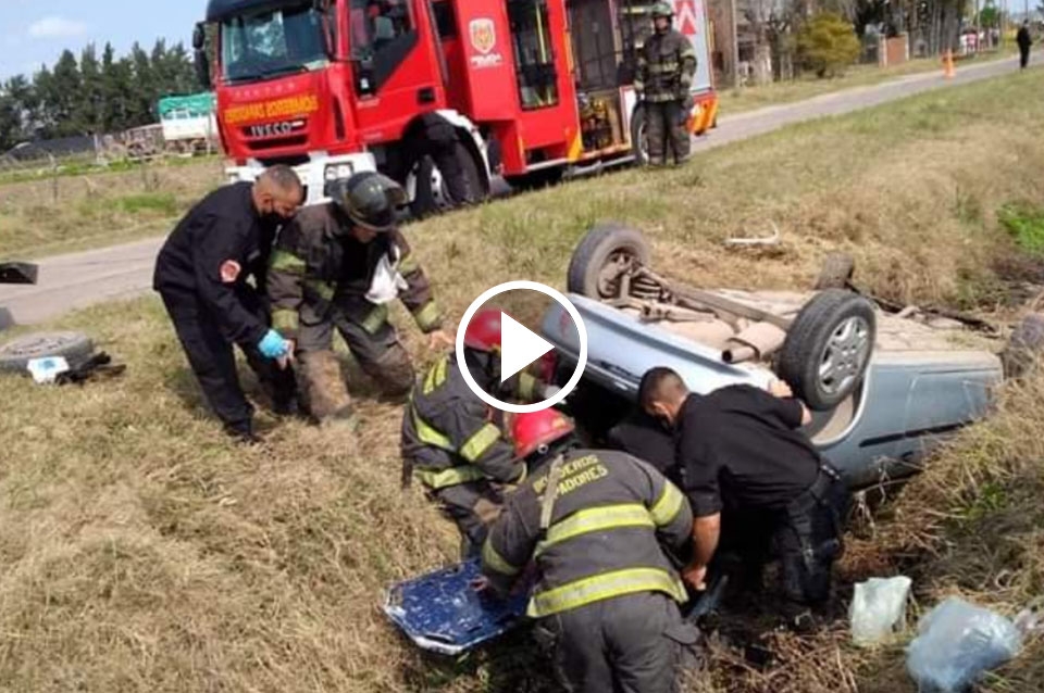 El domingo por la tarde, personal policial en colaboración de bombaros debieron socorrer a una persona que había quedado atrapada dentro su automóvil luego de tener un accidente.