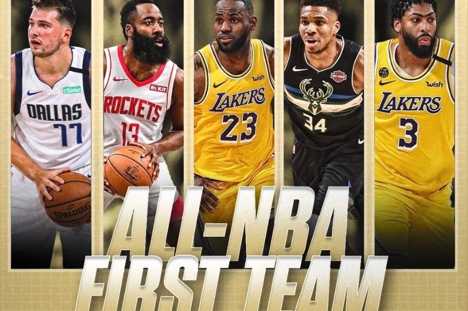 Luka Doncic (Dallas Mavericks), LeBron James y Anthony Davis (Los Angeles Lakers), Giannis Antetokounmpo (Milwaukee Bucks) y James Harden (Houston Rockets) fueron elegidos este miércoles en el quinteto ideal de la temporada 2019/20 de la NBA.