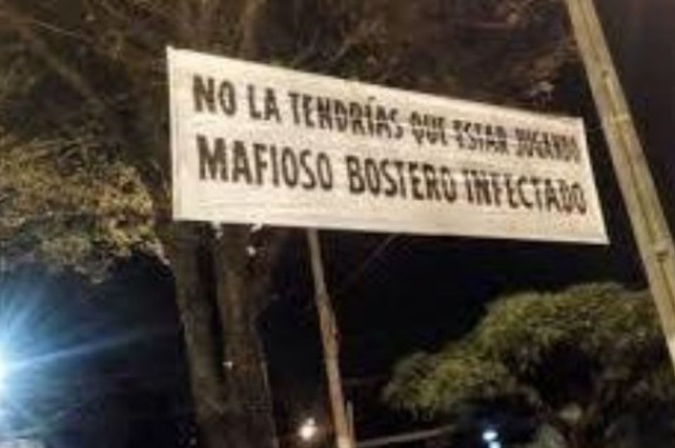 "No la tendrías que estar jugando, mafioso bostero infectado", fue el mensaje de unos de los pasacalles colocados por hinchas de River, que se viralizó en las redes sociales
