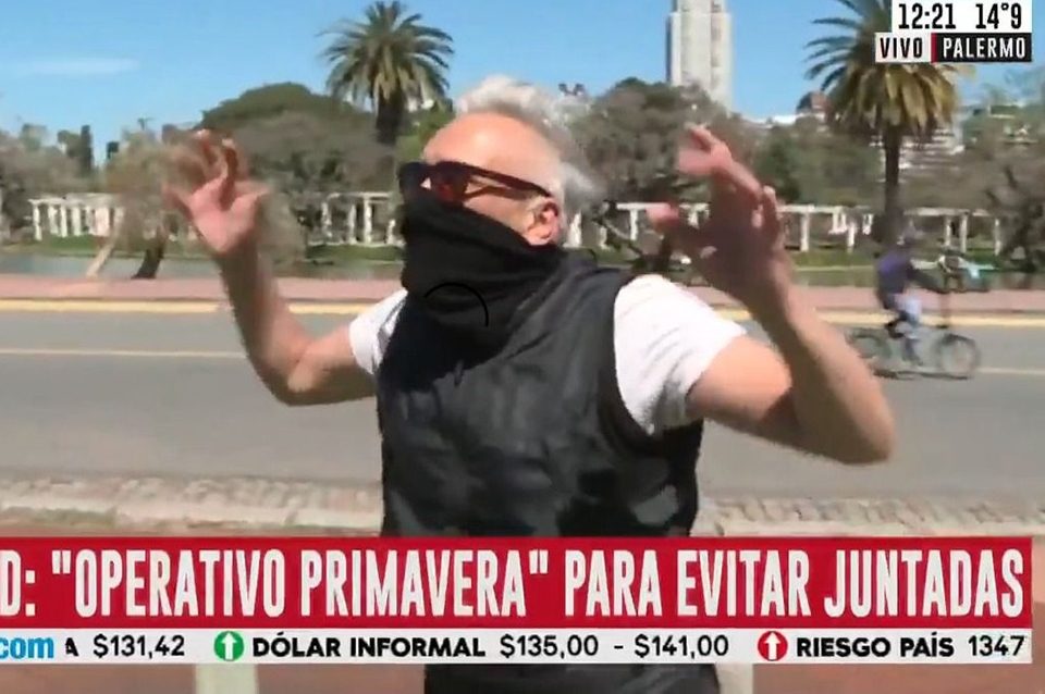 Roberto Funes, periodista de C5N, salió a recorrer los bosques de Palermo en un móvil esta tarde con motivo del Día de la Primavera. Pero en una de sus salidas fue agredido verbalmente por un hombre que pasaba en el lugar: "Lo vamos a echar de la Ciudad, ustedes tienen que ir a La Matanza".