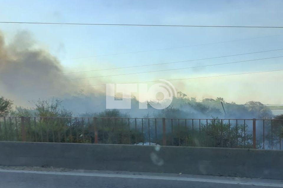 Quema de pastizales a la vera de la #Ruta168: los vecinos apagaron el fuego por sus propios medios