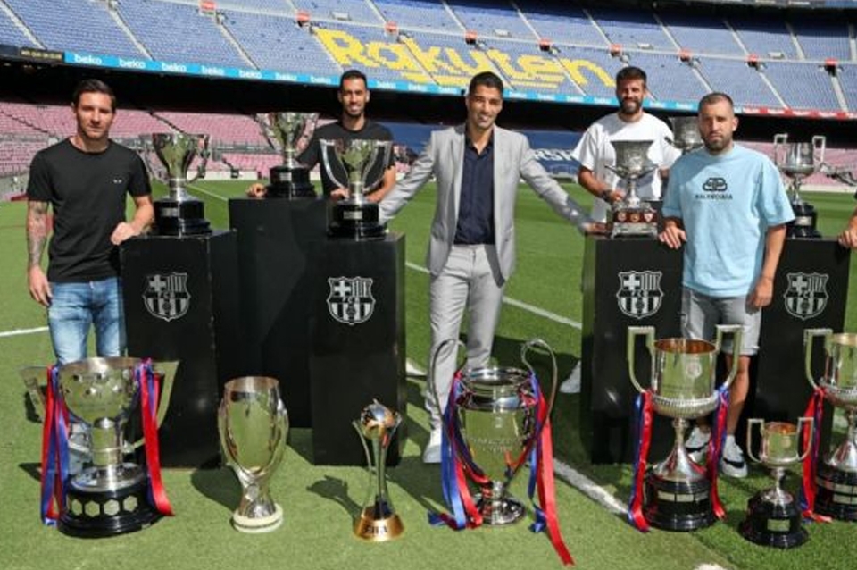 Acompañado por Messi, Piqué, Sergi Roberto y Sergio Busquets - los cuatro capitanes del FC Barcelona-, además de Jordi Alba, el delantero uruguayo quiso dejar a un lado los malos momentos y diferencias que pudo tener con los directivos del Barcelona e insistió en que se queda con los títulos conseguidos, recuerdos y logros que ni siquiera había imaginado alcanzar.