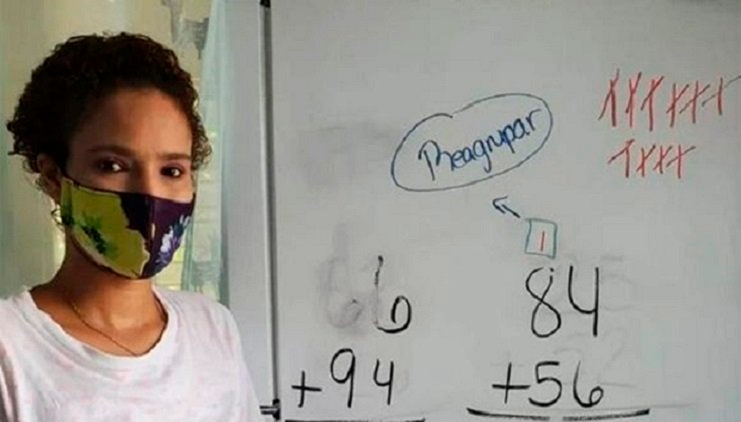 Nidia Rivera Méndez es quien se dedica a darle clases a sus tres hijos, en plena pandemia del Covid-19. Si bien la mayoría de los alumnos durante el brote del coronavirus se educan desde sus hogares, en esta ocasión lo que llamó la atención fue que la heladera de la casa se convirtió en un pizarrón.