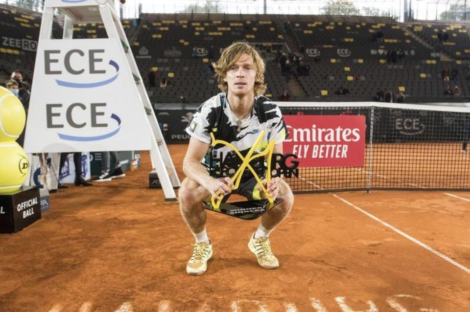 El ruso Andrey Rublev, quinto cabeza de serie, le ganó este domingo al griego Stefanos Tsitsipas por 6-4, 3-6 y 7-5 y se consagró campeón del ATP 500 de Hamburgo, disputado sobre polvo de ladrillo.