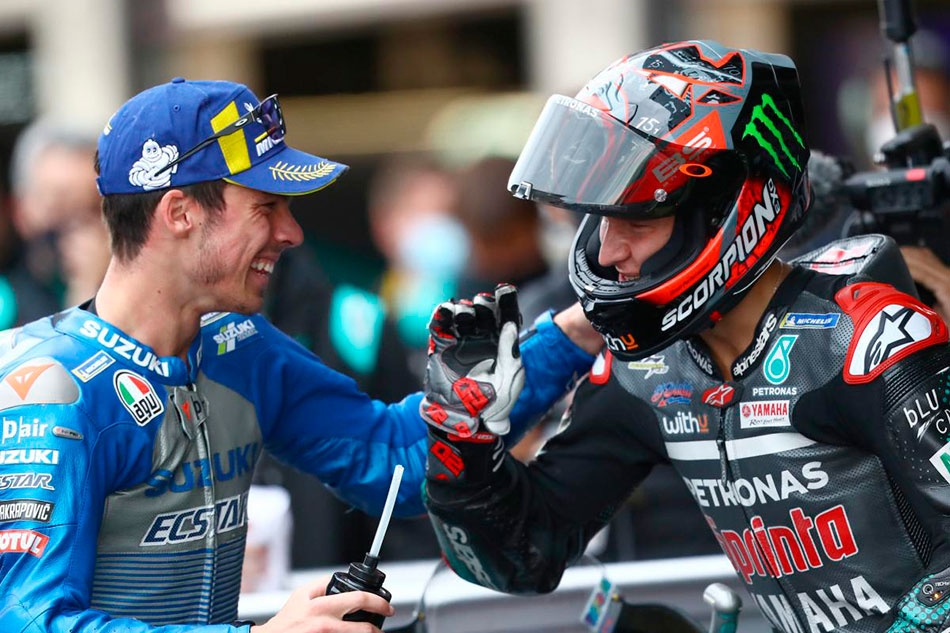 El Gran Premio de Catalunya estuvo lleno de emociones de principio a fin. El Campeonato de MotoGP™ llegaba al rojo vivo con 4 pilotos en tan solo 4 puntos y después de la carrera en el Circuit de Barcelona-Catalunya el póquer se convirtió en un duelo entre Fabio Quartararo (Petronas Yamaha SRT) y Joan Mir (Team Suzuki Ecstar). El francés recuperó el liderato de la categoría reina alzándose con su tercera victoria del año, acompañado en el podio por la dupla del Team Suzuki Ecstar formada por Mir y Alex Rins, que fueron 2º y 3º, respectivamente.