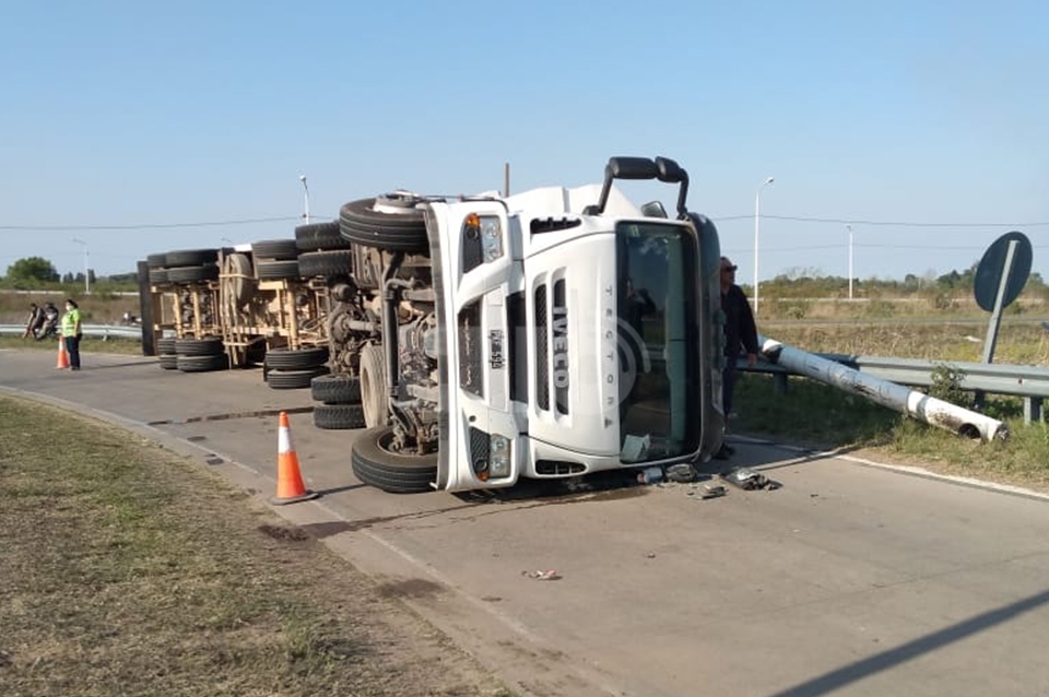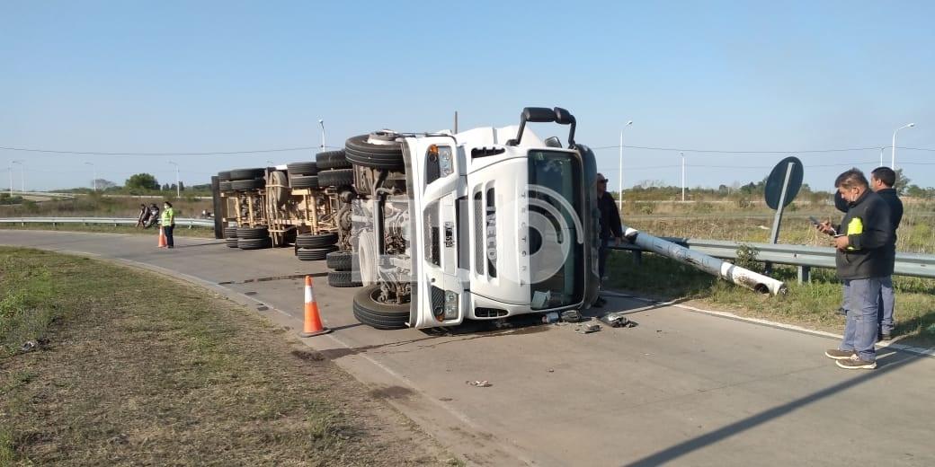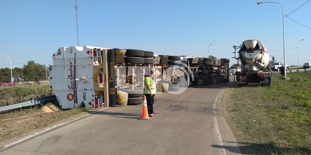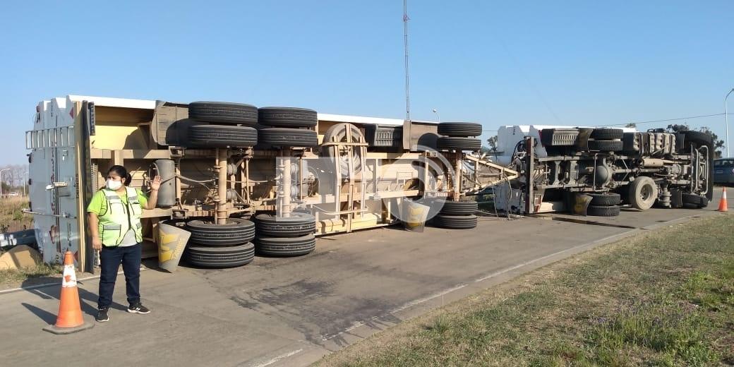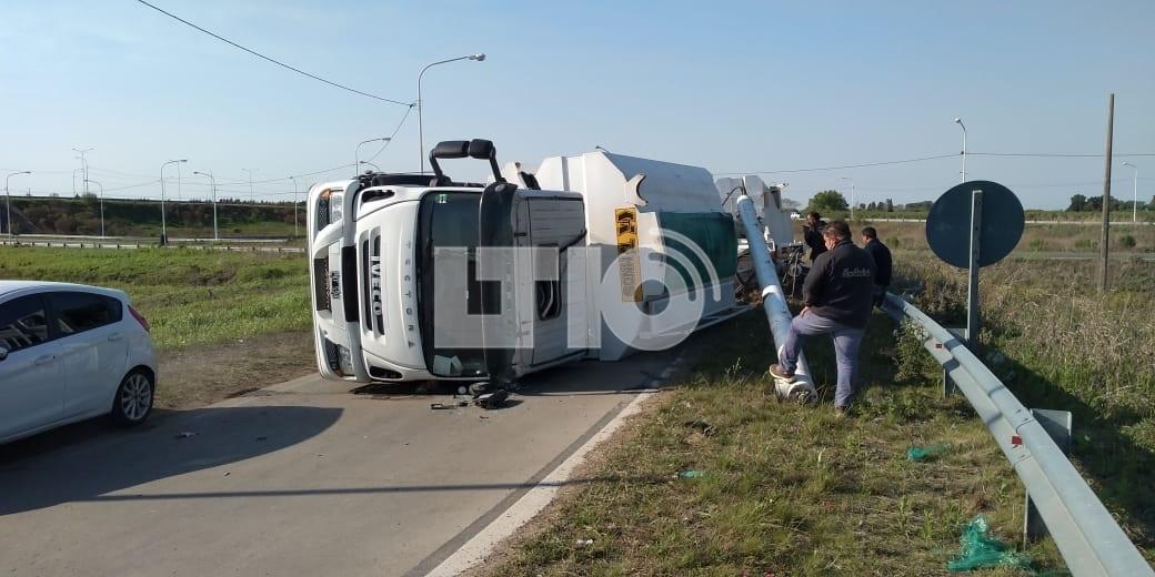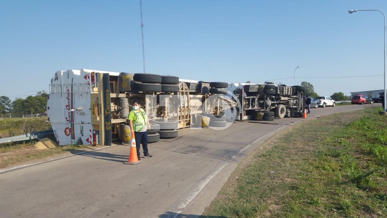 Minutos antes de las 8.30 de la mañana, un camión de la empresa San Andrés volcó en el rulo de la Ruta 70 y la Circunvalación a la altura de Recreo.