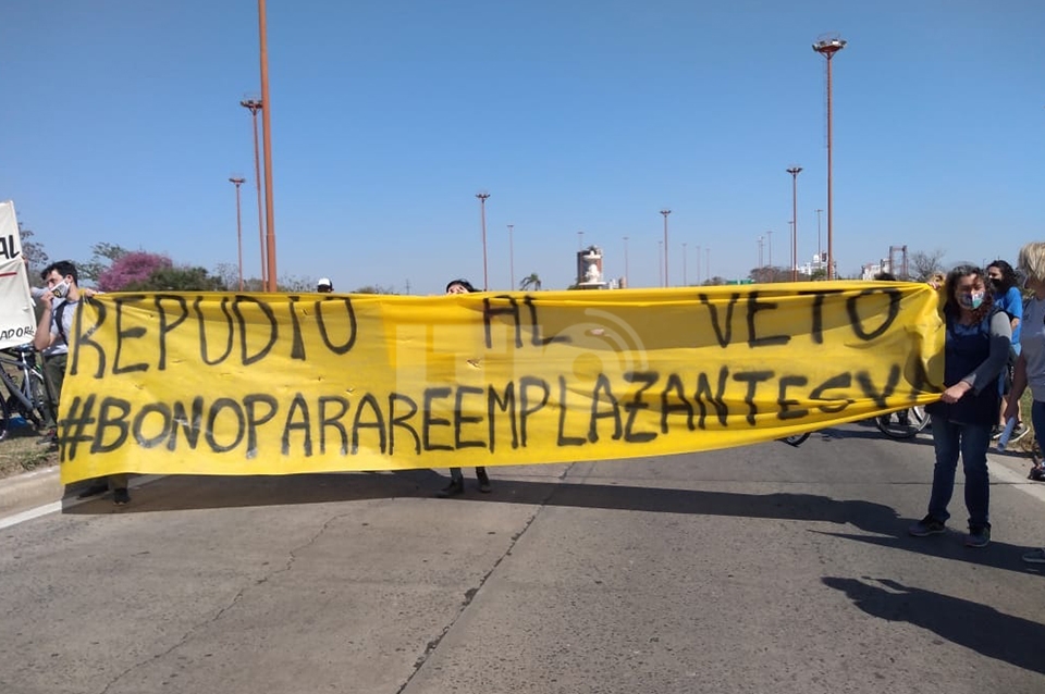“Somos 13.500 compañeros que fuimos mandados a nuestras casas, sin poder acceder más a los reemplazos, realizar otra actividad debido al aislamiento, y sin ningún beneficio por ser empleados del estado” dijeron los manifestantes al Móvil de LT10.