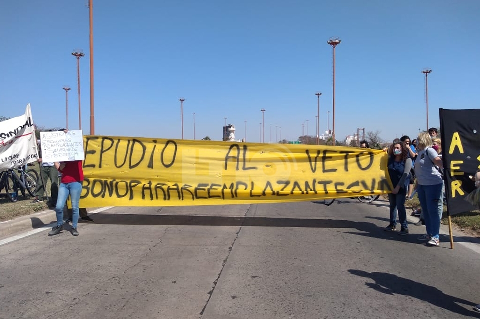 En la mañana de este martes, docentes reemplazantes y asistentes escolares cortaron el tránsito durante una media hora sobre el Puente Oroño en el acceso a la ciudad de Santa Fe en el marco de una jornada de lucha provincial, que se replicarán en otras ciudades.