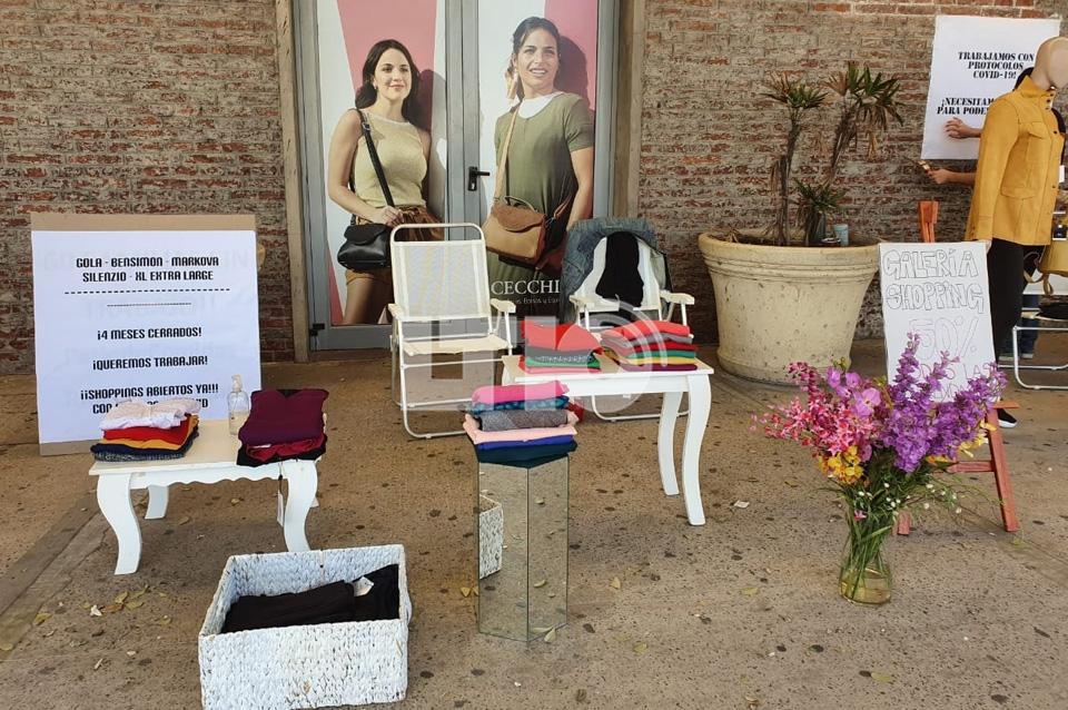 Es por eso que este martes realizaron una jornada de protesta y, ante la imposibilidad de abrir los locales, sacaron todos los negocios a la galería oeste del Shopping (la que da al dique 1 del Puerto).