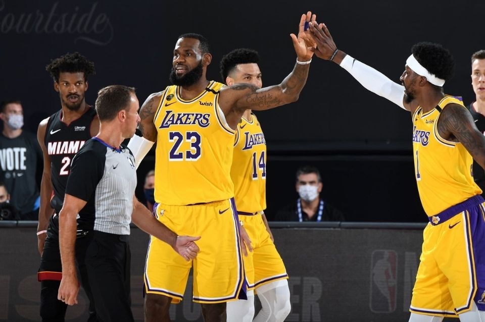 Los Angeles Lakers (1-0), ganadores de la División Oeste, se impusieron anoche a Miami Heat (0-1), campeón de la Conferencia Este, por 116 a 98, en la primera final de la NBA de básquetbol de los Estados Unidos.