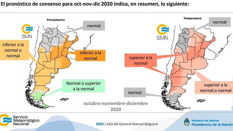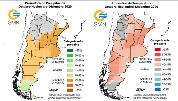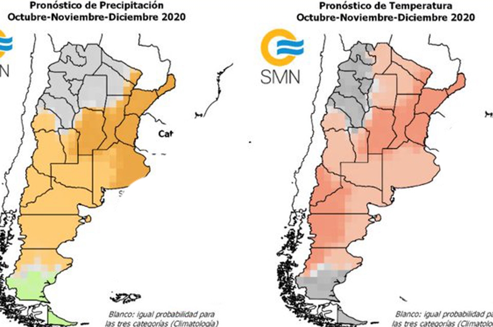 El SMN estima que las temperaturas serán superiores a lo normal sobre la región del Litoral ( Santa Fe, Entre Ríos, Córdoba y oeste de Patagonia).
