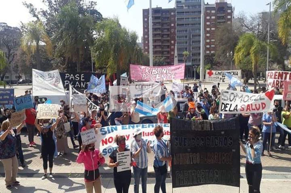 Este jueves, luego de varias protestas que ya realizaron frente al hospital Cullen se movilizaron hacia Casa de Gobierno en disconformidad también con las sumas no remunerativas entregadas al personal sanitario y a la inacción de Salud para atender la situación generada por la cantidad de profesionales que debido al coronavirus no pueden asistir a sus lugares de trabajo.