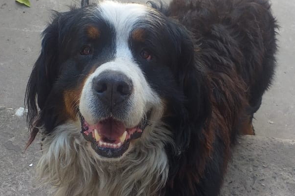Se trata de Emo, un perro de raza Boyero Berna que causa sensación en Pueblo Esther por sus atracos.