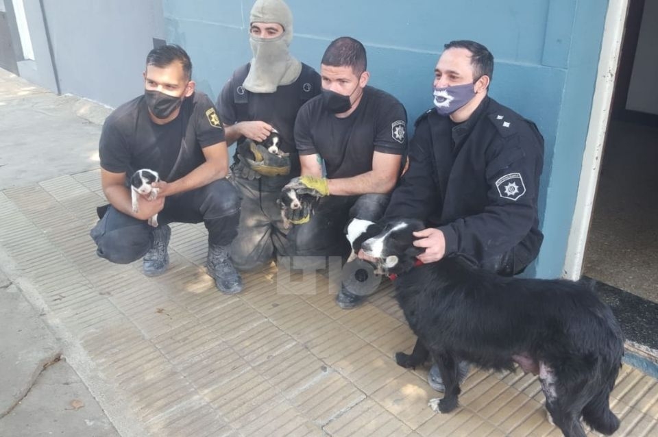 Ocurrió en una vivienda ubicada en calle Gobernador Freyre y Jujuy en donde bomberos y personal de ASSA trabajaron arduamente desde las 9 de la mañana para rescatar a cuatro cachorros que accidentalmente cayeron dentro de una rejilla en el patio.