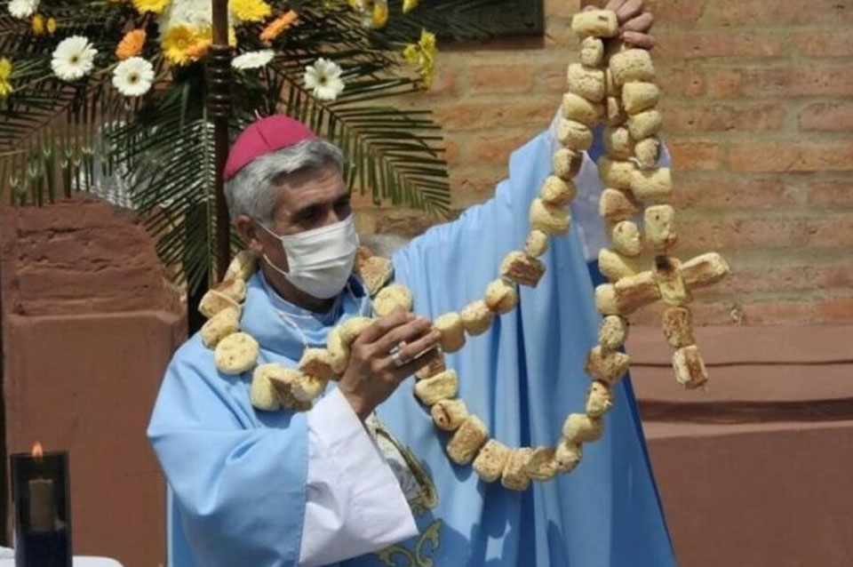 El hecho se registró en la localidad de Caá Catí ubicada a 220 kilómetros de Misiones donde como todos los años se dio continuidad a una particular tradición que consiste en obsequiar un rosario compuesto de chipá de almidón para quién es declarado "Mayordomo".