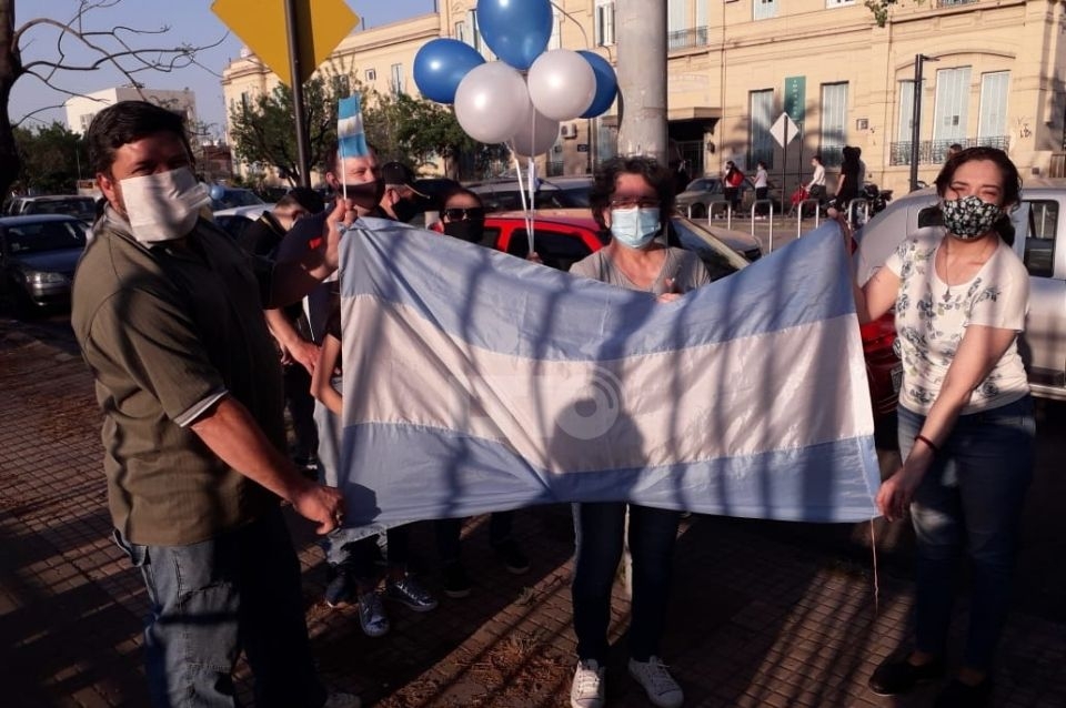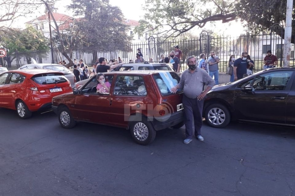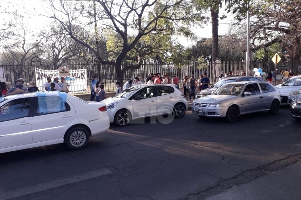 Con una caravana de autos, bocinazos y un abrazo simbólicos, alumnos, ex alumnos y familiares reclamaron en el lugar.