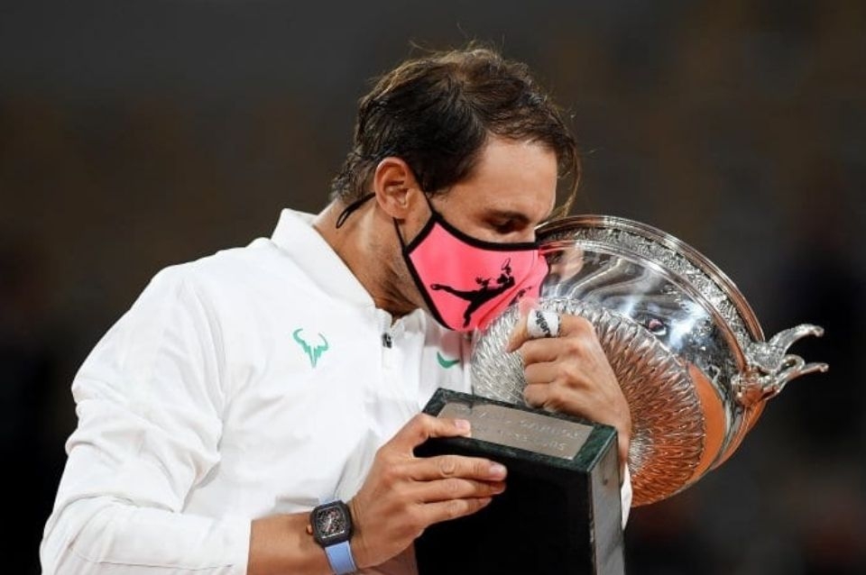 El español ganó hoy su decimotercero Roland Garros tras superar a Novak Djokovic por 6-0, 6-2 y 7-5, en menos de tres horas de juego, e igualó al suizo Roger Federar como el máximo ganador de Grand Slam con 20 títulos.