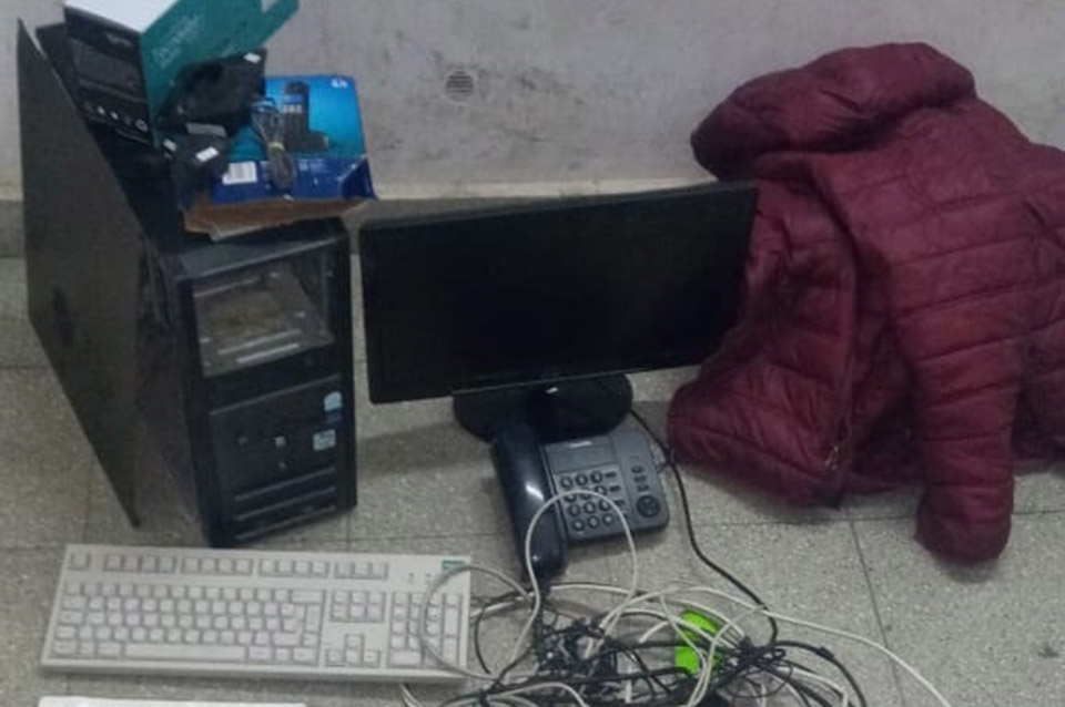 El delincuente de 43 años pudo robar una computadora y otros elementos pero cuando se daba a la fuga fue interceptado por personal policial y qued{o detenido.